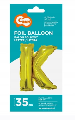 BALON foliowy LITERA K ZŁOTA napis chrzest imie