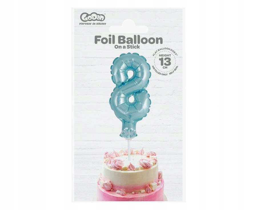 BALON foliowy na tort cyfra 8 błękitna Dekoracja Urodziny