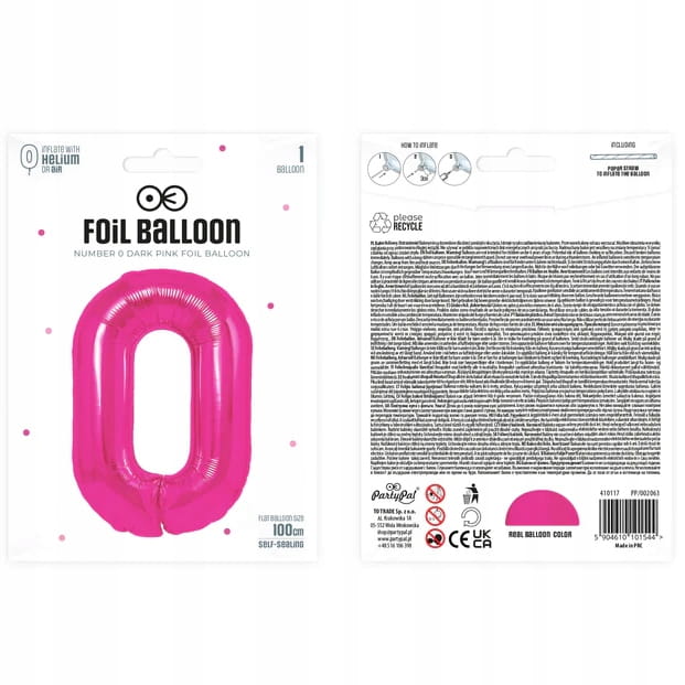 Balon Foliowy Cyfra 0 Ciemnoróżowa Dekoracja na Urodziny 100cm na Hel