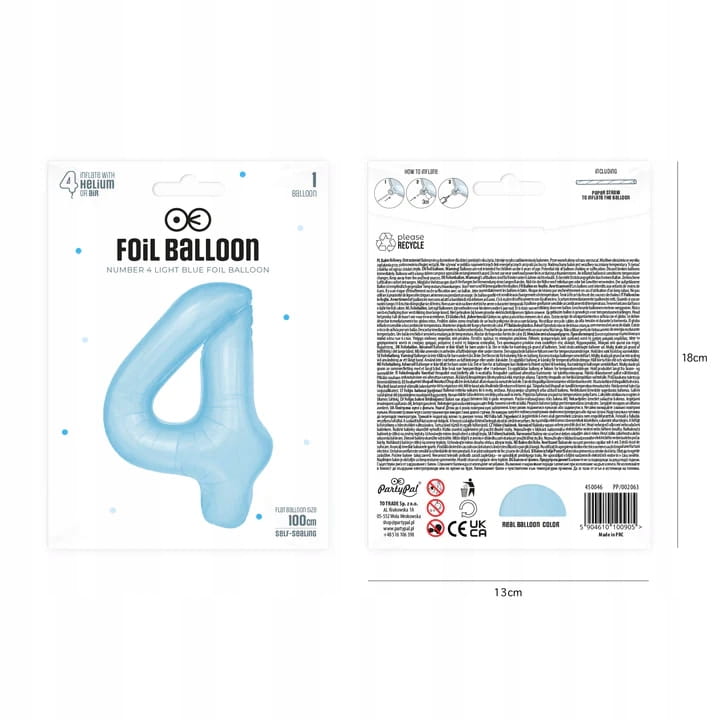 BALON FOLIOWY "CYFRA 4" Błękitna