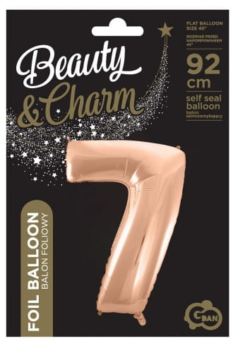 Balon foliowy CYFRA 7 Rose Gold Różowe złoto na Urodziny 92cm na hel