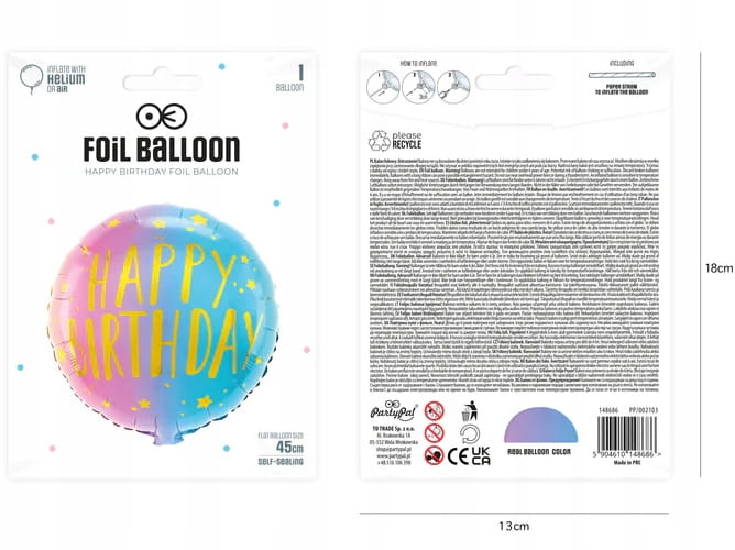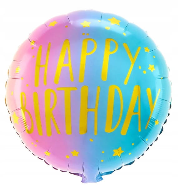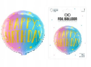 Balon foliowy Happy Birthday gwiazdki okrągły na hel Dekoracja na Urodziny