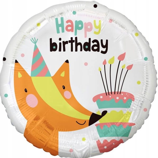 Balon foliowy Lis lisek Happy Birthday Okrągły dekoracja na urodziny