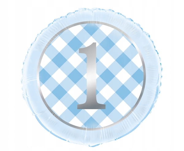 Balon foliowy 18 cali Gingham niebieski, zapakowany