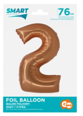 Balon foliowy Smart, Cyfra 2 miedziana, 76 cm