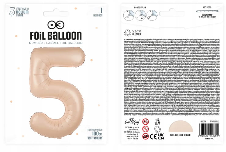 Balon foliowy cyfra 5 karmelowy 100 cm Dekoracja Na Urodziny