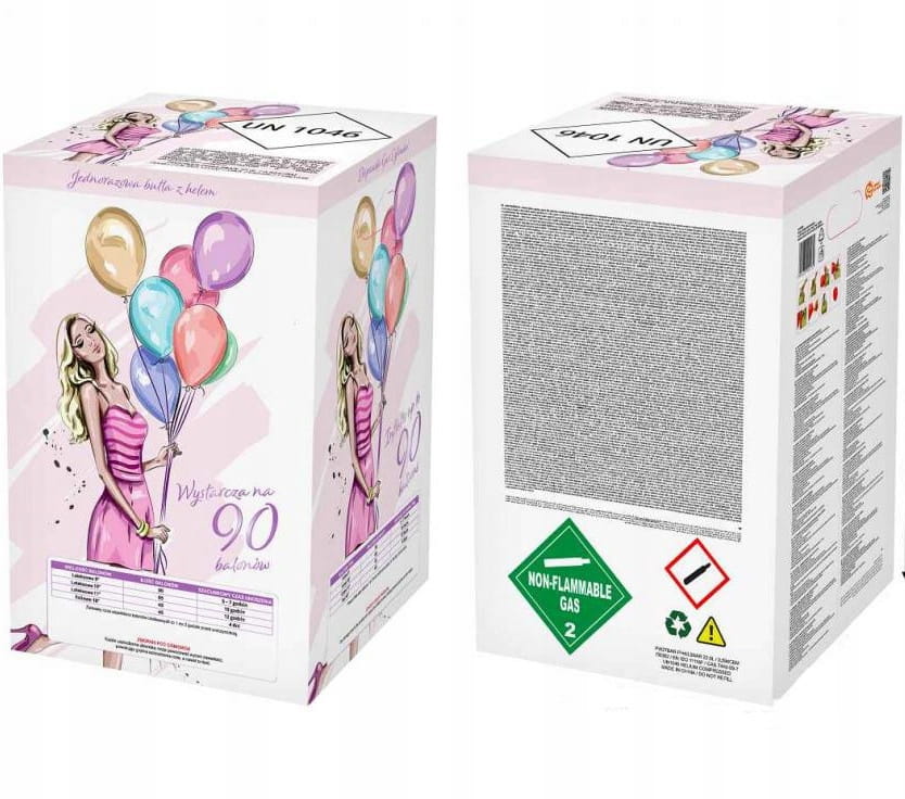Ilość helu zawartego w butli wystarcza na 90 balonów o rozmiarze 23 cm (9 cali).