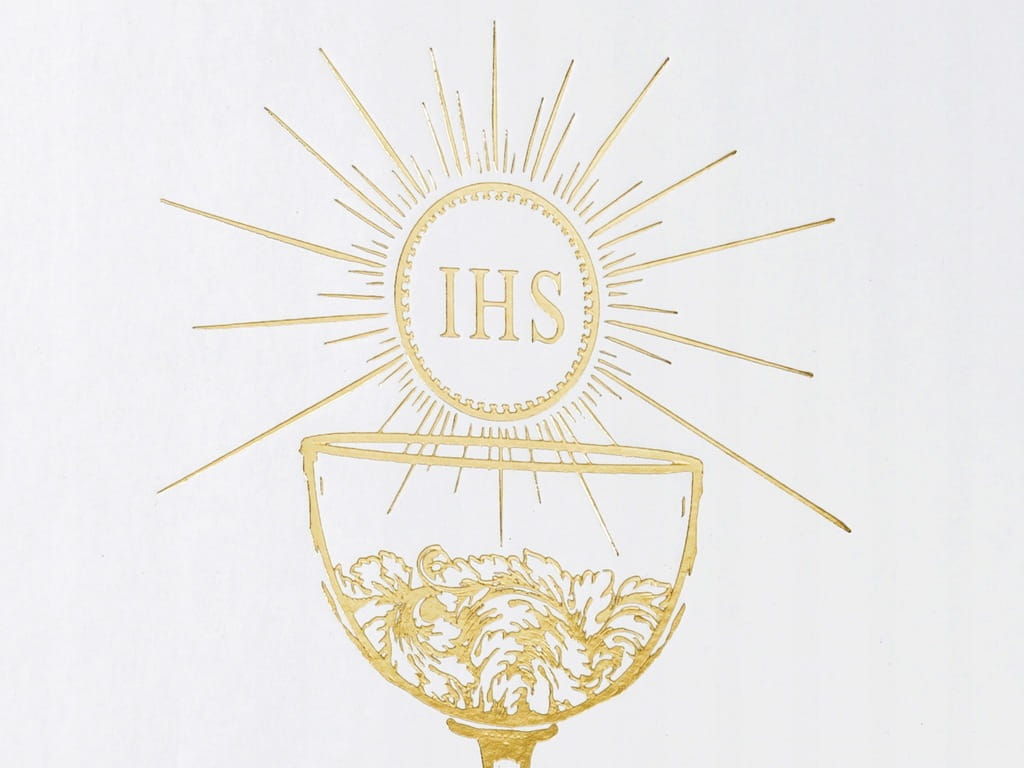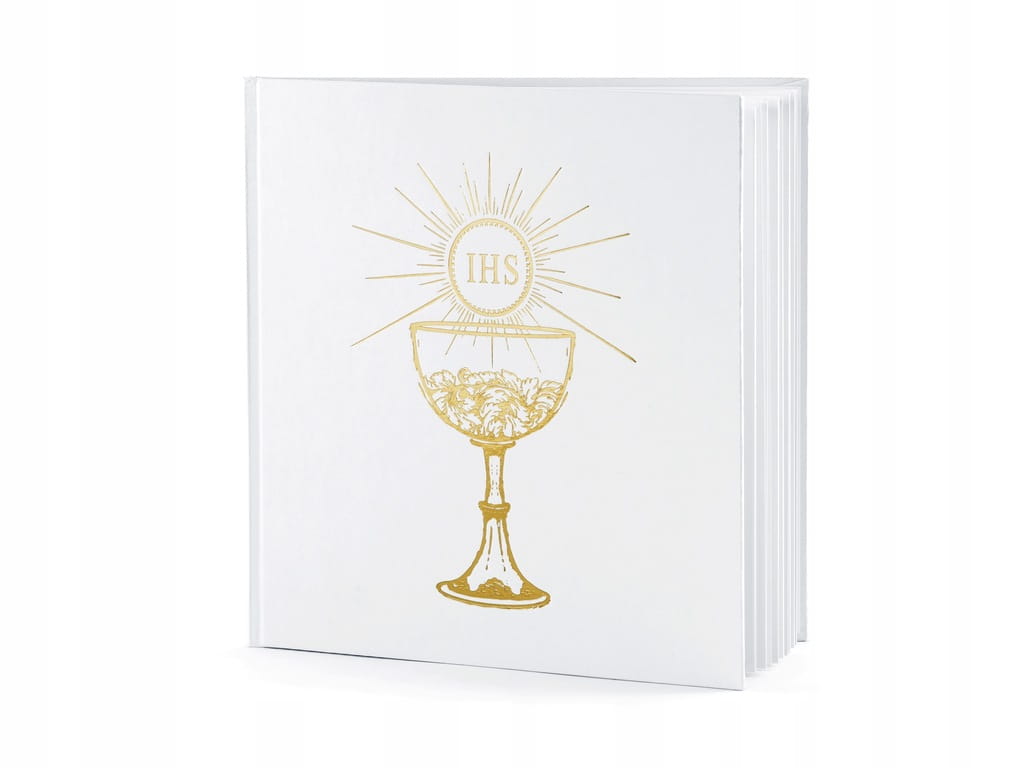 Księga Gości "Komunia Święta - Kielich IHS", biały, PartyDeco, 20,5 x 20,5 cm
