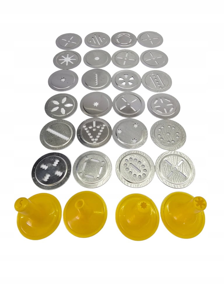 - 26 nakładek z różnymi wzorami do wykonywania ciasteczek (aluminium)