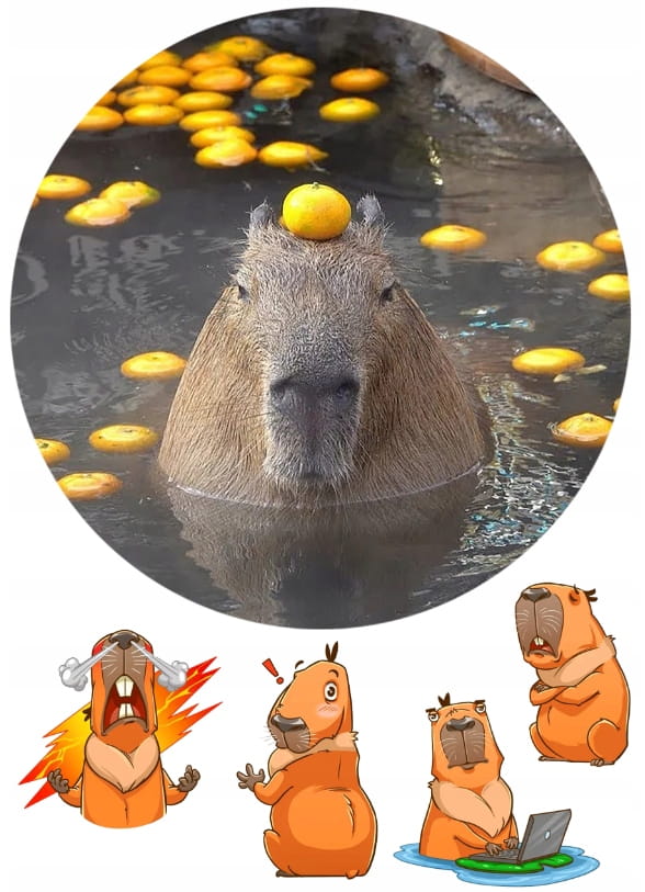 OPŁATEK NA TORT KAPIBARA Okrąg Postacie Dekoracja Urodziny WYDRUK cukrowy