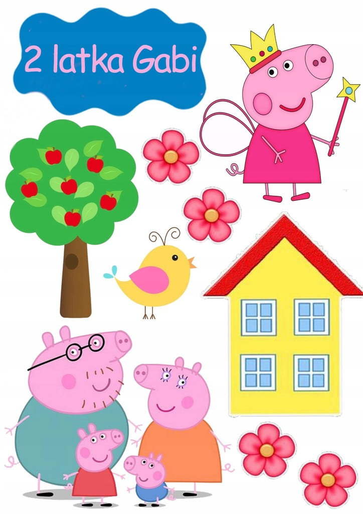 Opłatek Tort ŚWINKA PEPPA POSTACIE + IMIĘ Wydruk Cukrowy A4