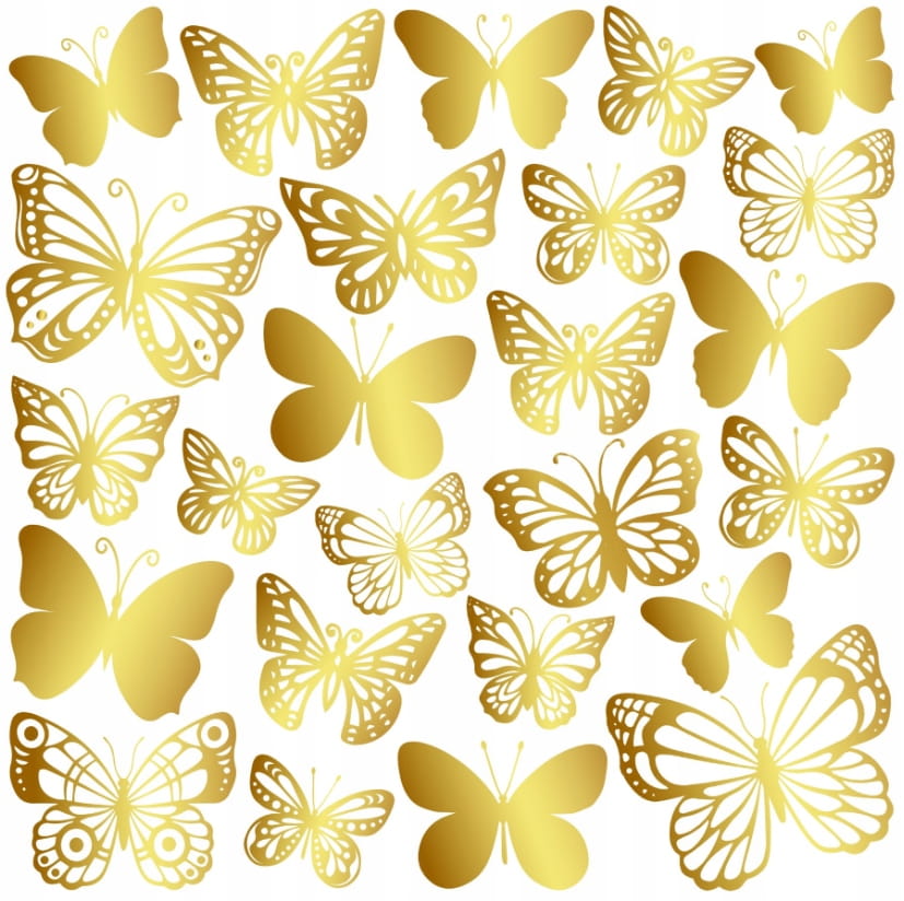 Opłatek Waflowy na Tort ZŁOTE MOTYLE Dekoracja Urodziny wydruk waflowy A4
