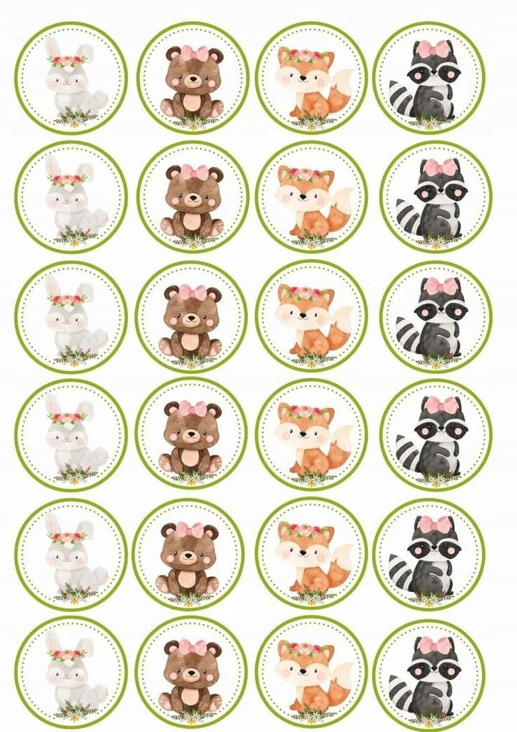 Opłatek na BABECZKI MUFFINKI ZWIERZĘTA LEŚNE na Urodziny Wydruk cukrowy