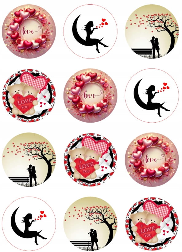 Opłatek na Muffinki BABECZKI TORT na WALENTYNKI wydruk cukrowy A4