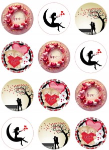 Jadalny opłatek cukrowy na babeczki z motywem: WALENTYNKI