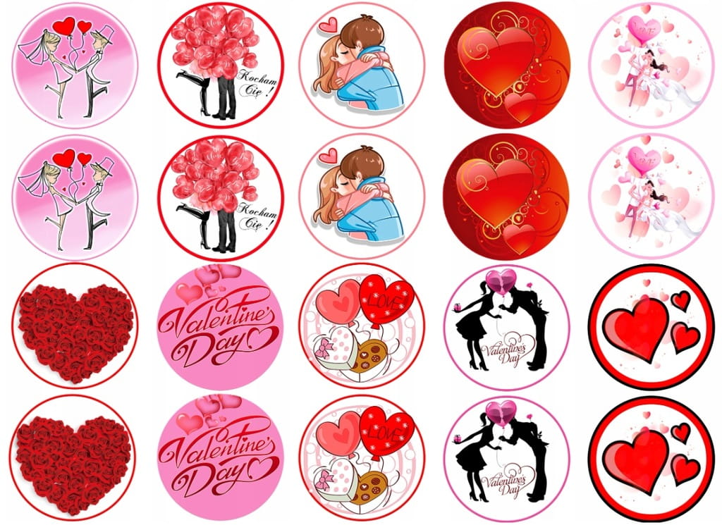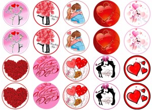 Jadalny opłatek waflowy na babeczki z motywem: WALENTYNKI