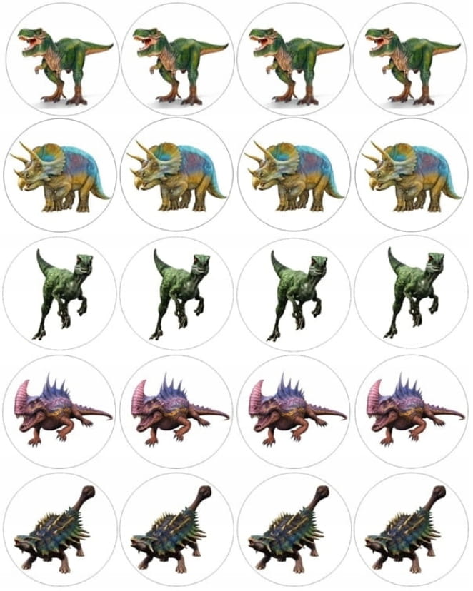 Opłatek na Muffinki Babeczki DINOZAURY Dekoracja urodzinowa Wydruk waflowy