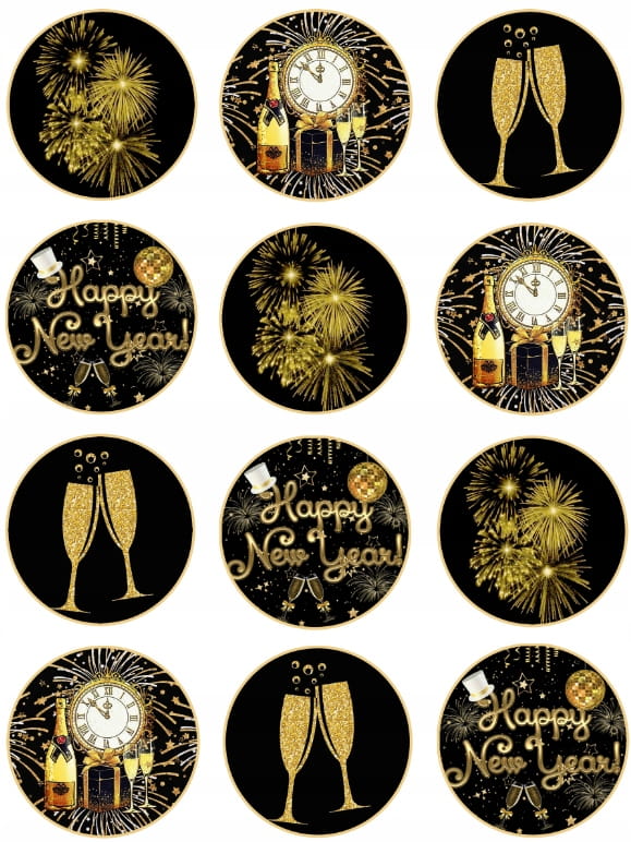 Opłatek na Muffinki Babeczki HAPPY NEV YEAR Sylwester Wydruk cukrowy