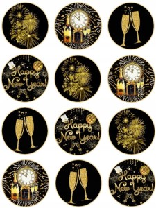 Jadalny opłatek cukrowy na babeczki z motywem:SYLWESTER