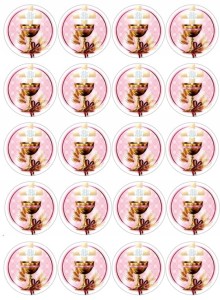 Jadalny opłatek waflowy na babeczki z motywem: KOMUNIA ŚWIĘTA