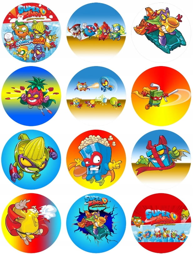 Opłatek na Muffinki Babeczki SUPER ZINGS Dekoracja Urodziny wydruk Cukrowy