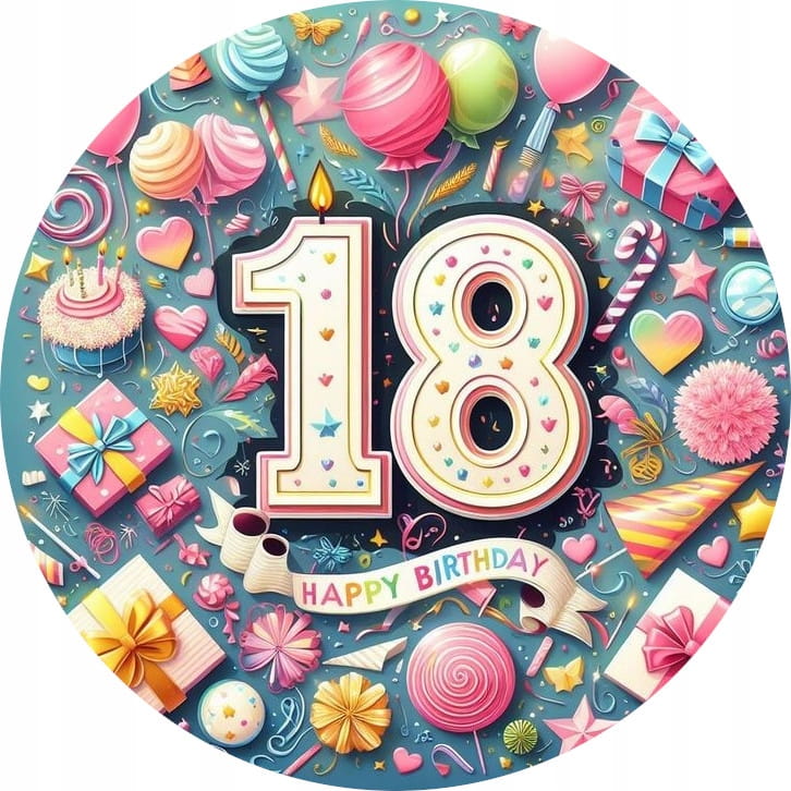 Opłatek na Tort 18 URODZINY Osiemnastka Wydruk Cukrowy okrągły 20cm