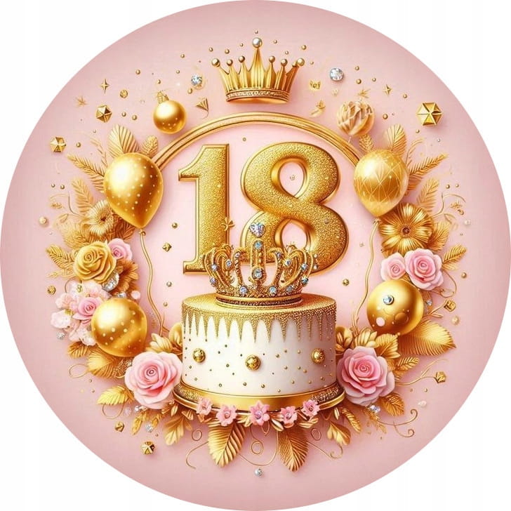 Opłatek na Tort 18 URODZINY Osiemnastka Wydruk Cukrowy okrągły 20cm