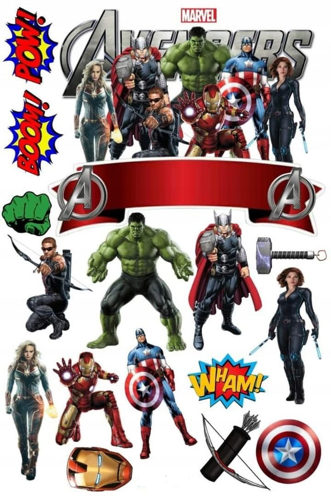 Opłatek na Tort AVENGERS MARVEL + IMIĘ Dekoracja Urodzinowa Wydruk cukrowy