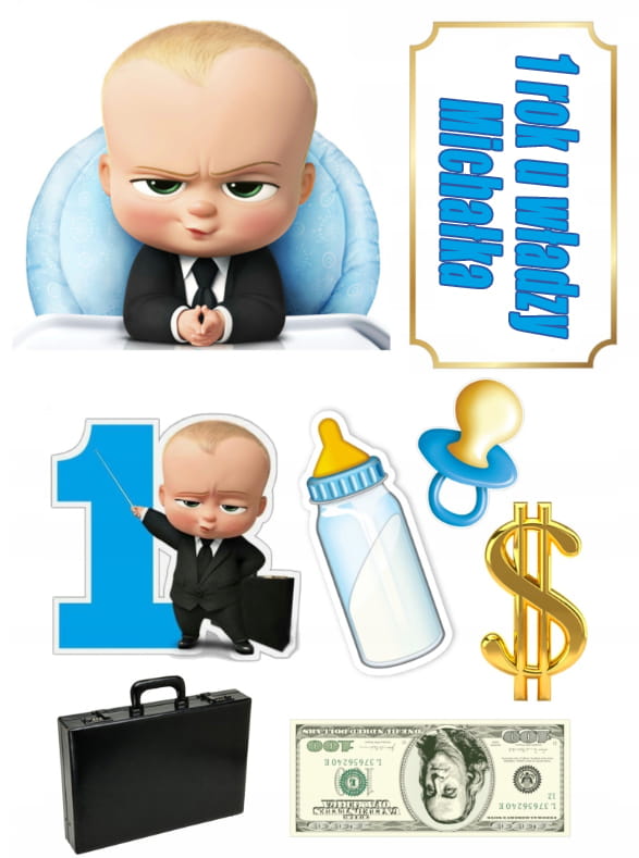 Opłatek na Tort BABY BOSS na ROCZEK + IMIĘ Tekst Wydruk papier waflowy