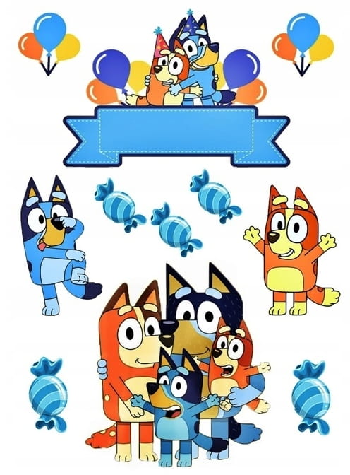 Opłatek na Tort BLUEEY BLUE POSTACIE + IMIĘ Wydruk Waflowy A4