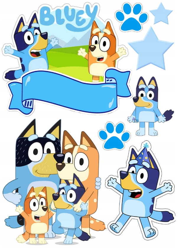 Opłatek na Tort BLUEEY BLUE POSTACIE + IMIĘ Wydruk Waflowy A4