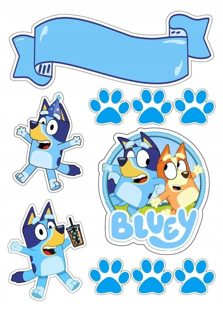 Opłatek na Tort BLUEEY BLUE POSTACIE + IMIĘ Wydruk Waflowy A4