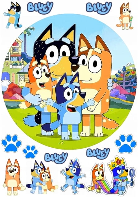 Opłatek na Tort BLUEEY Okrąg Postacie Dekoracja Urodziny Wydruk cukrowy