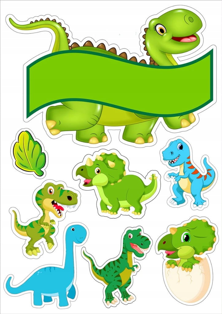 Opłatek na Tort DINOZAUR Postacie + IMIĘ wydruk Cukrowy A4