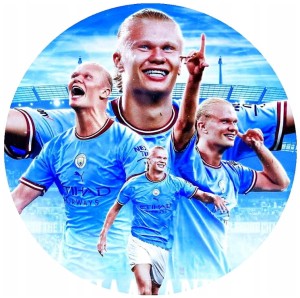 Jadalny okrągły opłatek na tort z motywem: HAALAND HALAND