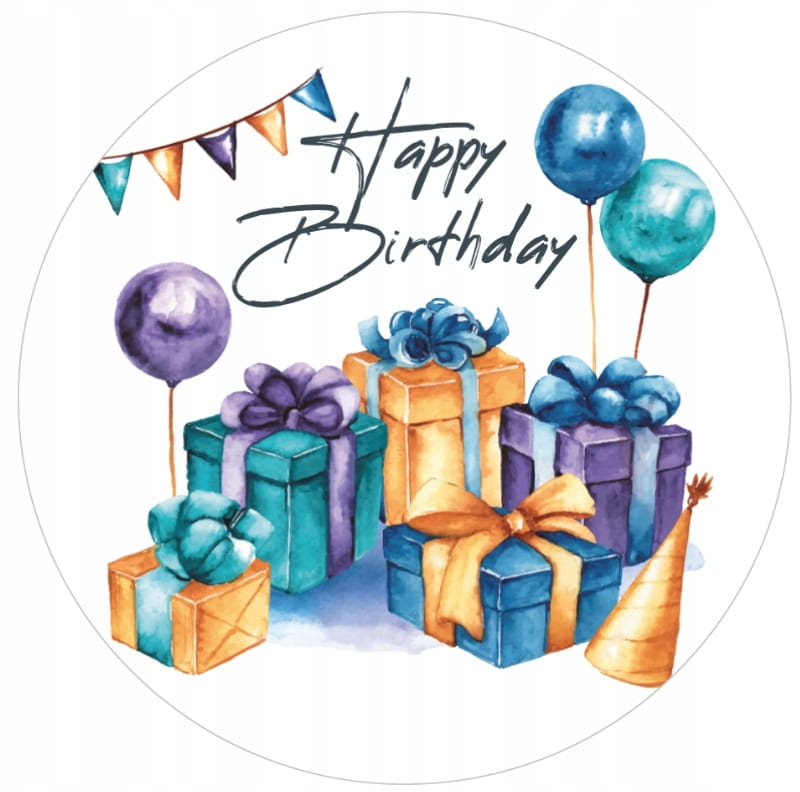 Opłatek na Tort HAPPY BIRTHDAY Urodziny Wydruk Waflowy okrągły 20 cm