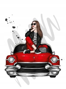 Jadalny opłatek cukrowy na tort z motywem: KOBIETA SAMOCHÓD