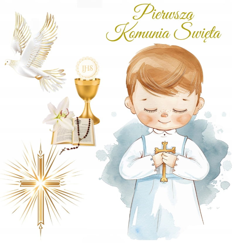 Opłatek na Tort KOMUNIA ŚWIĘTA wydruk Cukrowy komunijny Dekoracja Tortu