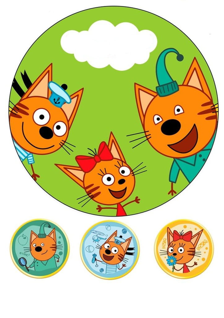 Opłatek na Tort KOTOCIAKI OKRĄG POSTACIE Dekoracja Urodziny Wydruk Cukrowy
