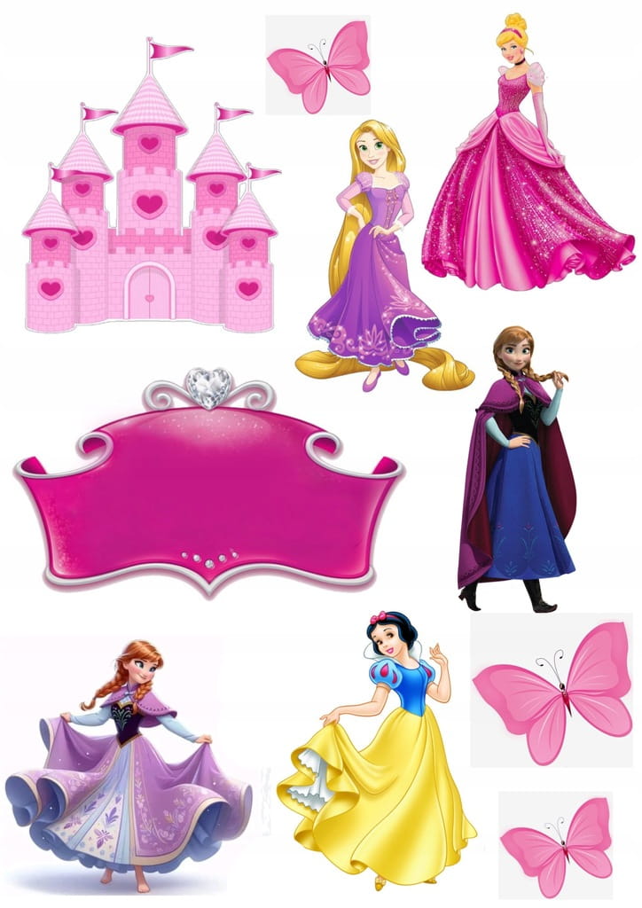 Opłatek na Tort KSIĘŻNICZKI PRINCESS + IMIĘ Dekoracja Tortu Wydruk cukrowy