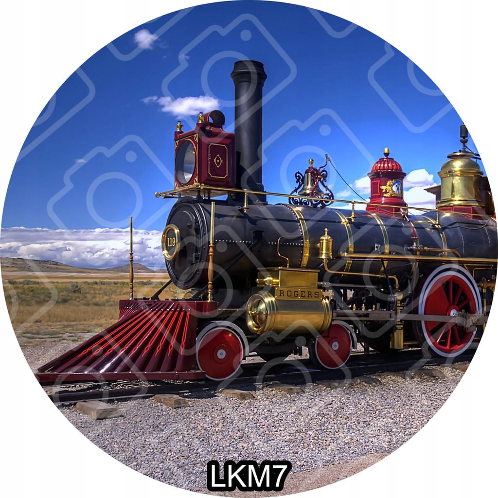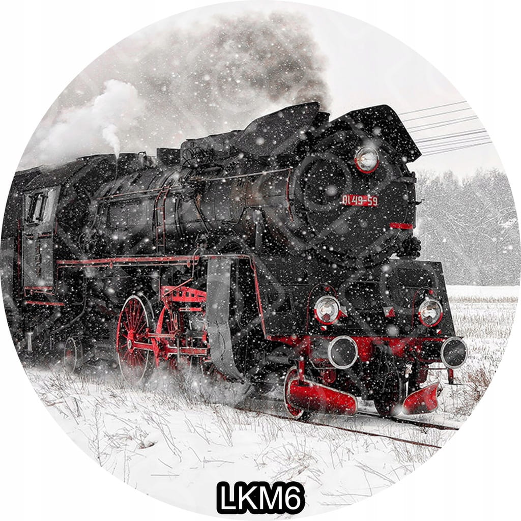 Jadalny okrągły opłatek na tort z motywem: LOKOMOTYWA