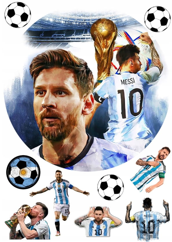Opłatek na Tort MESSI +POSTACIE Dekoracja Urodzinowa wydruk Cukrowy