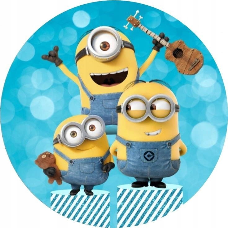 Jadalny okrągły opłatek na tort z motywem MINIONKI