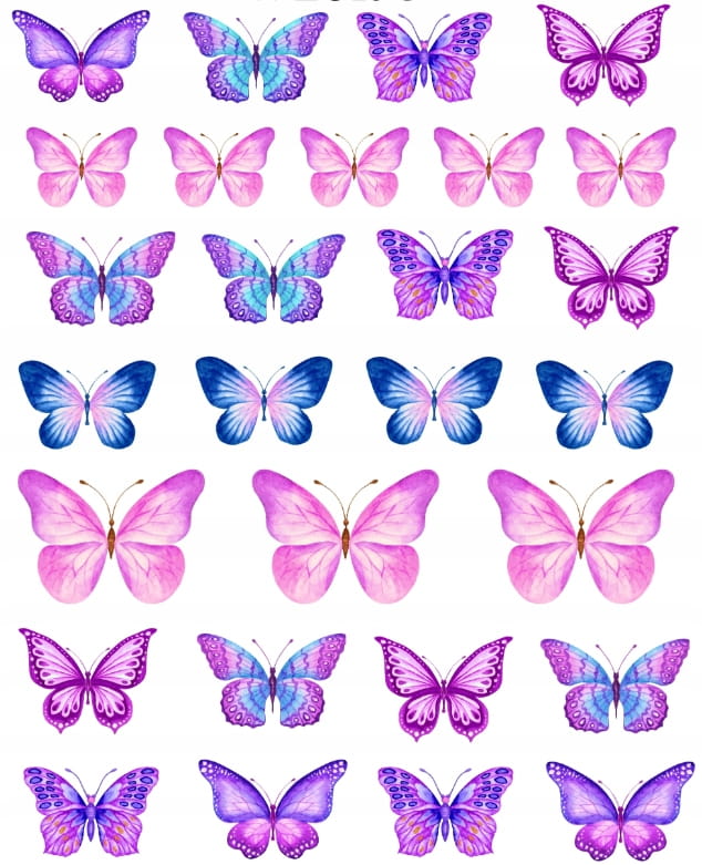 Opłatek na Tort MOTYLKI MOTYLE Dekoracja Urodziny wydruk cukrowy A4