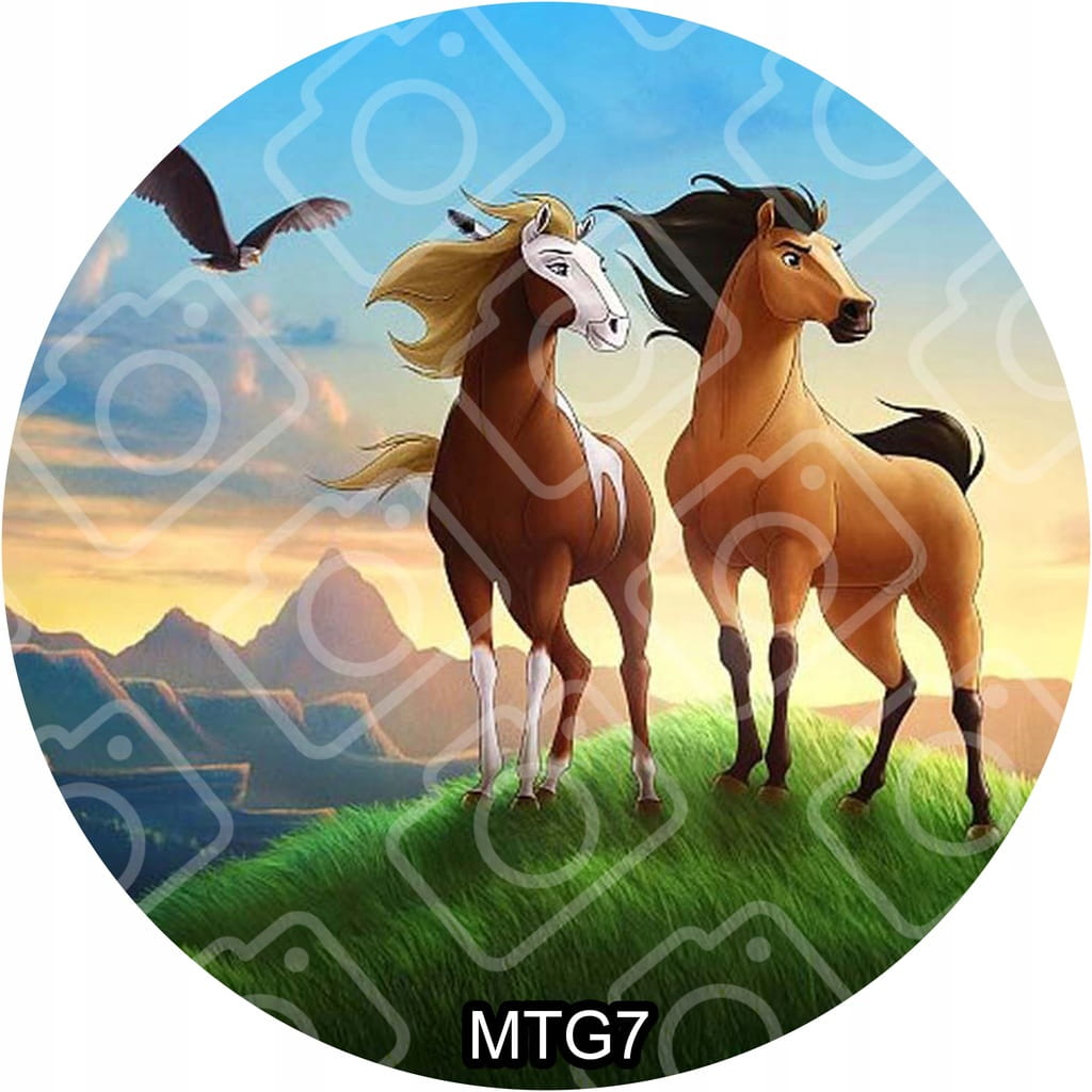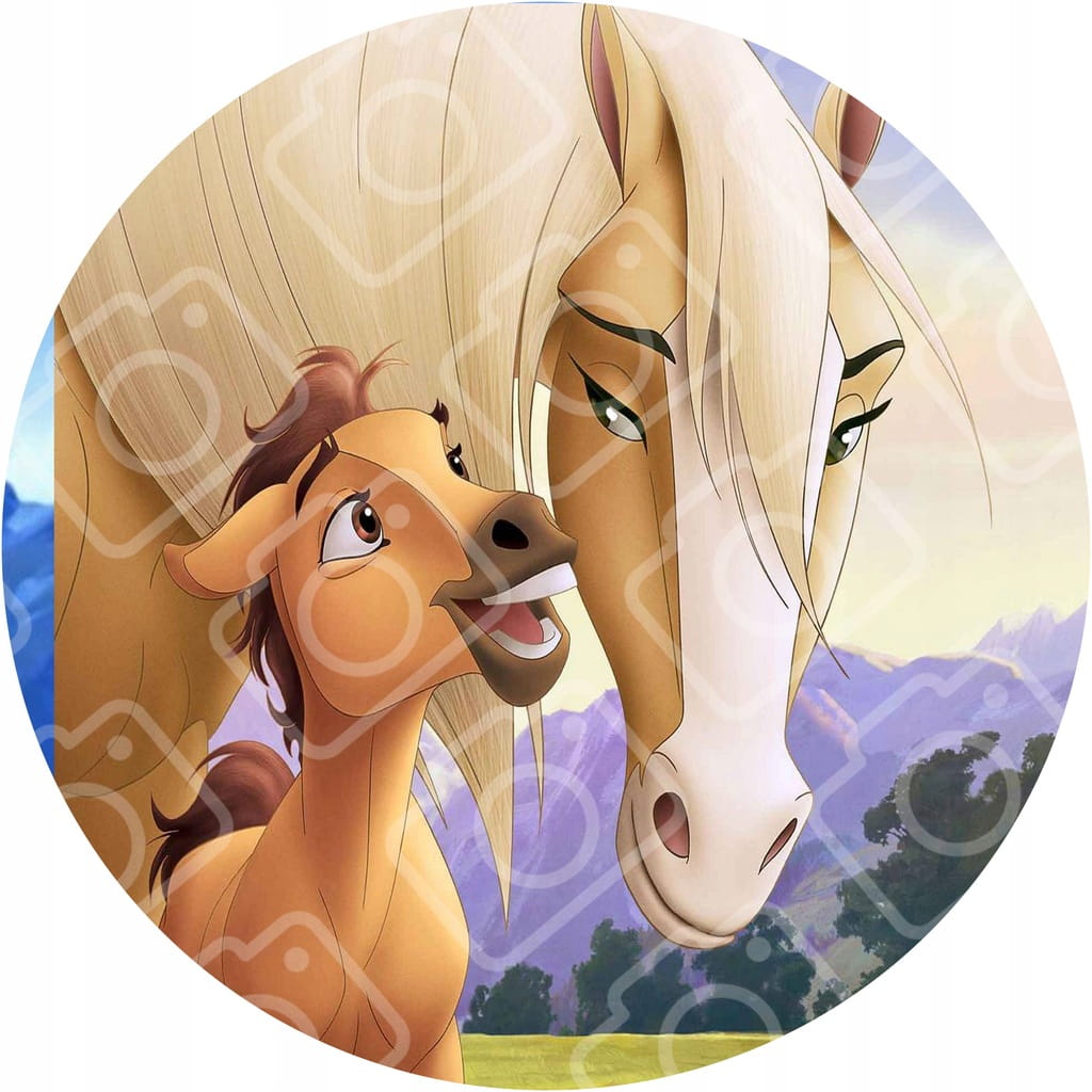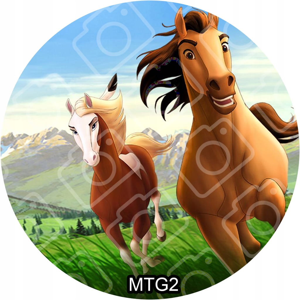 Jadalny okrągły opłatek na tort z motywem: MUSTANG Z DZIKIEJ DOLINY