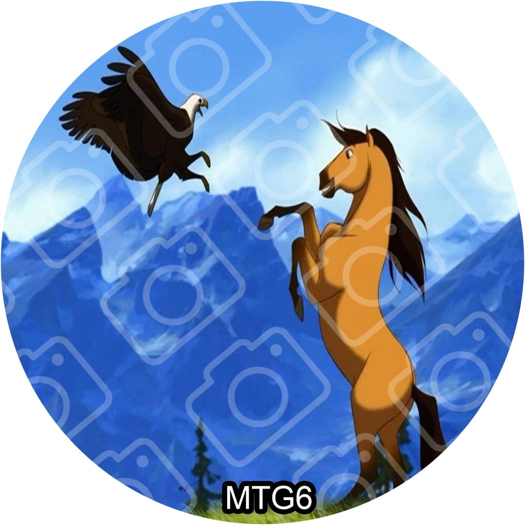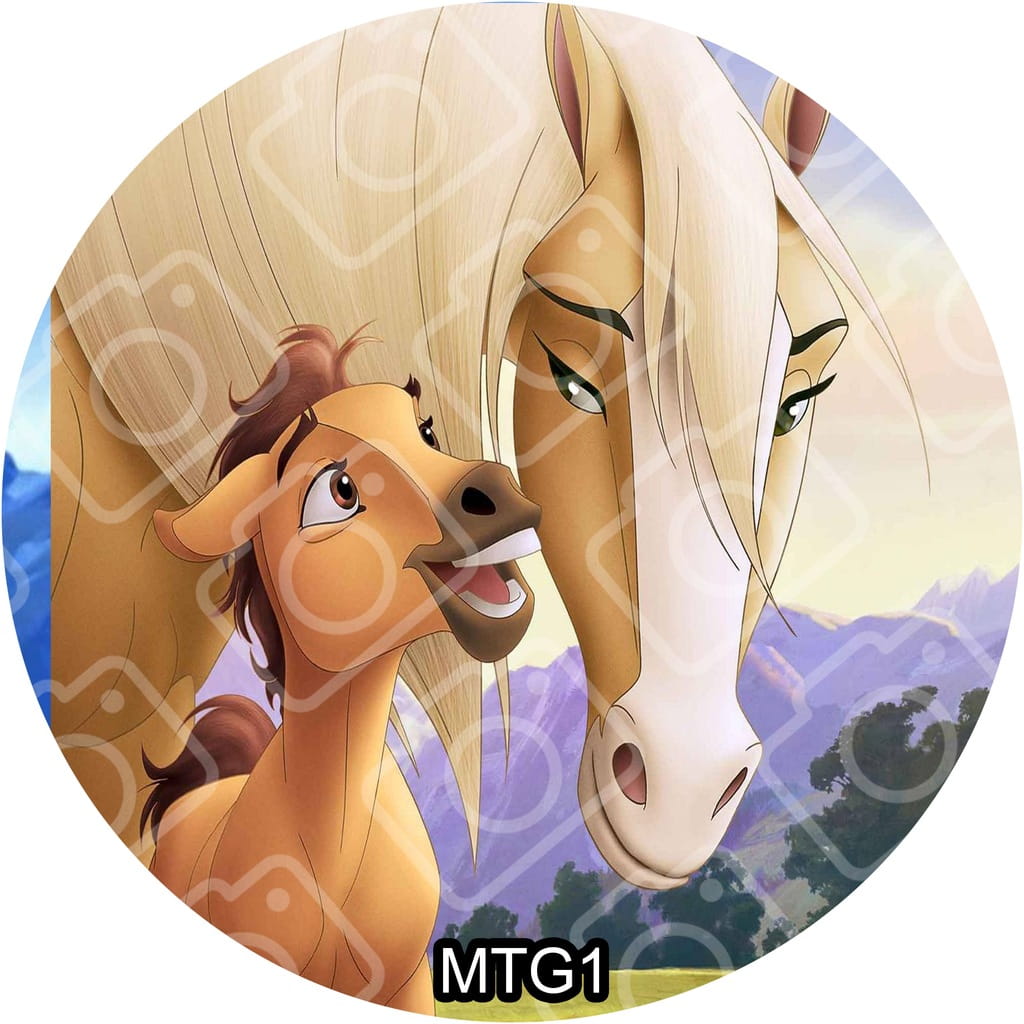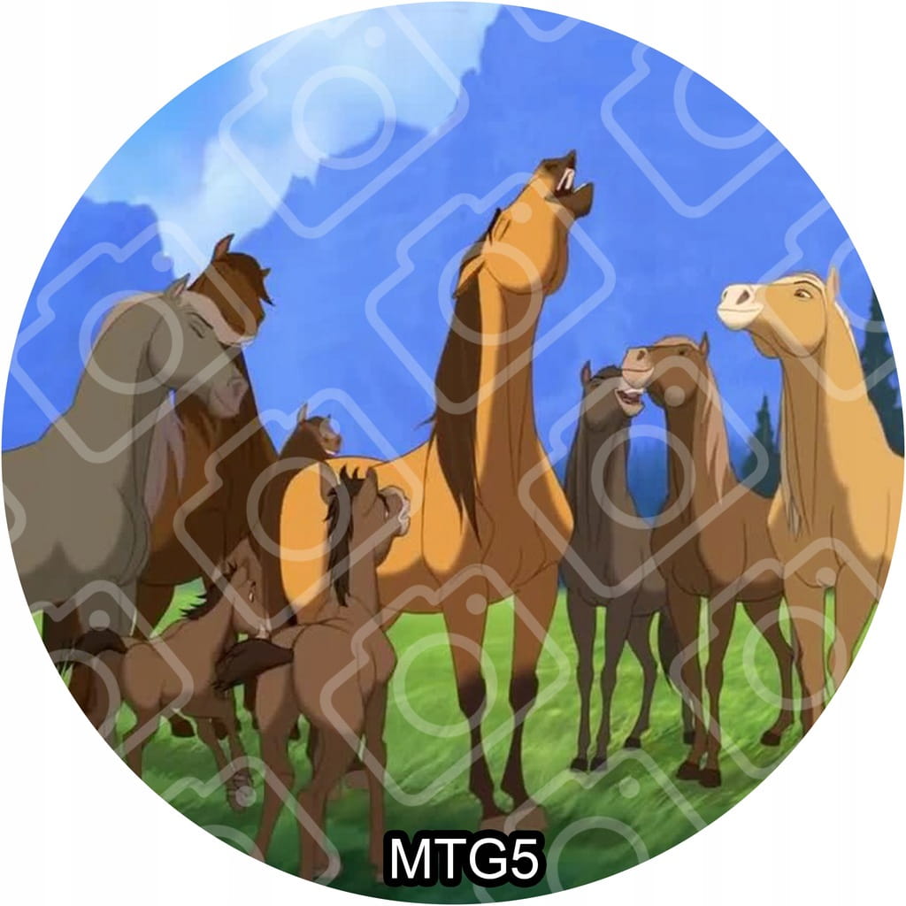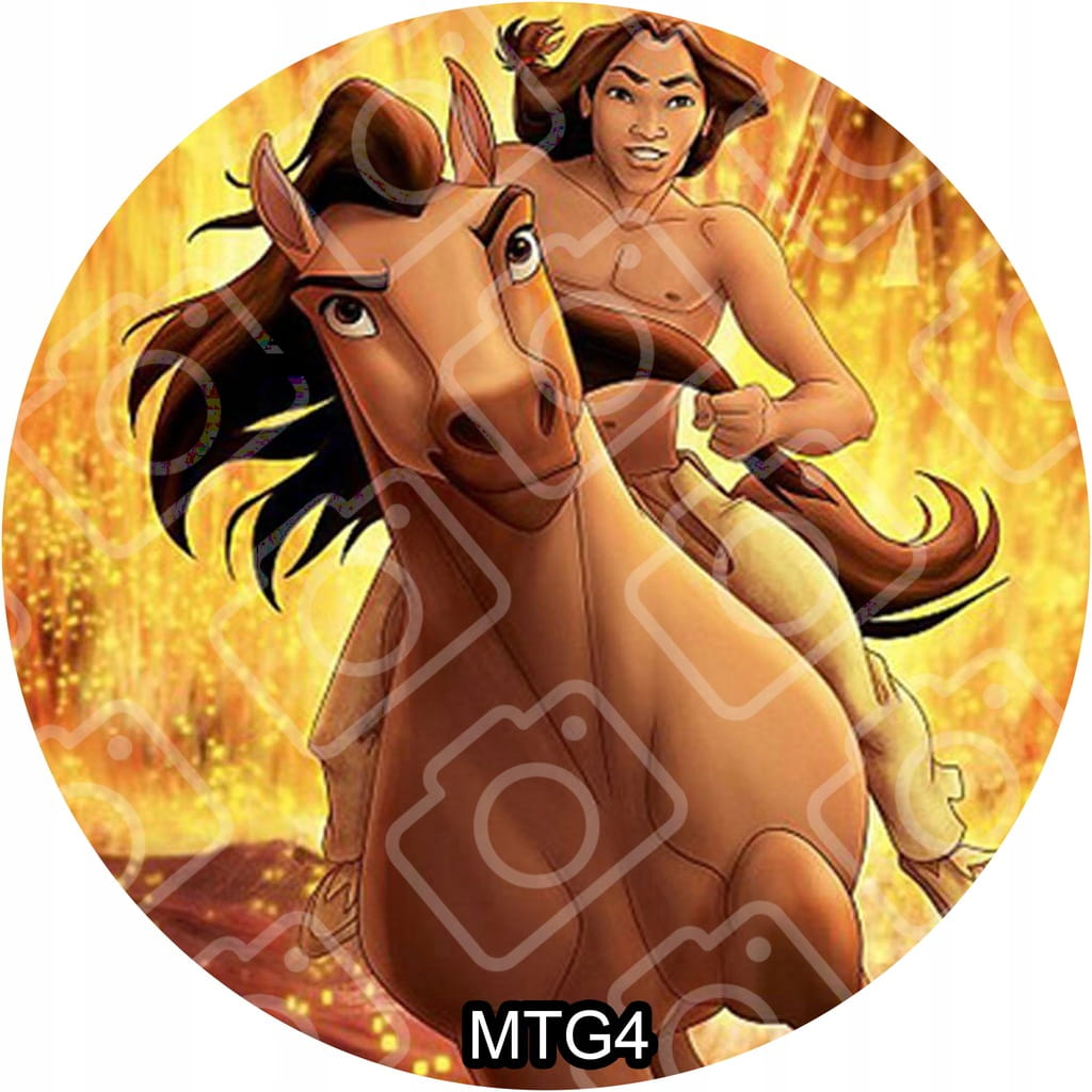 Jadalny okrągły opłatek na tort z motywem: MUSTANG Z DZIKIEJ DOLINY