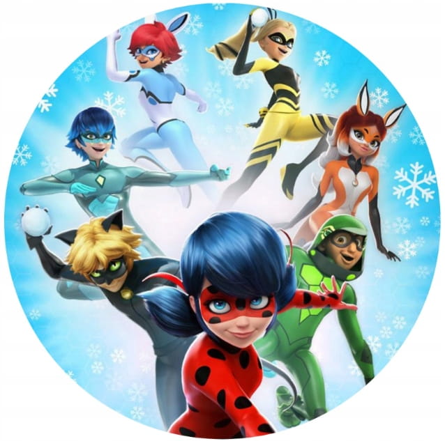 Opłatek na Tort Miraculum Biedronka i Kot Wydruk Waflowy okrągły 20cm