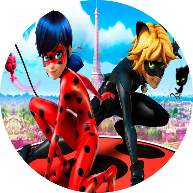 Opłatek na Tort Miraculum Biedronka i Kot Wydruk Waflowy okrągły 20cm