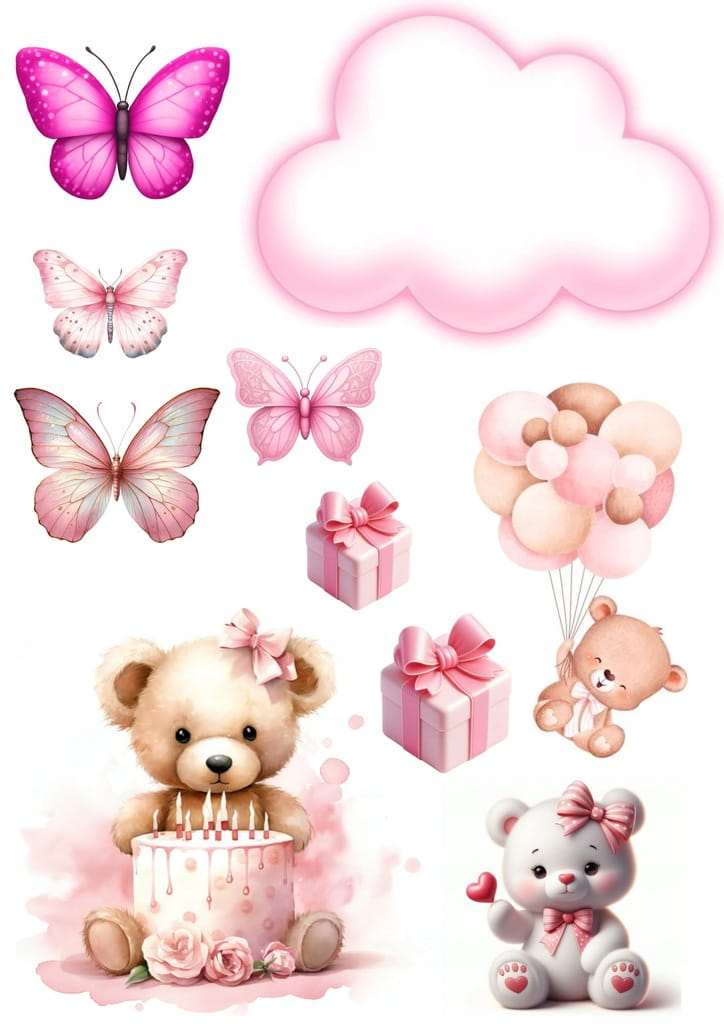 Opłatek na Tort ROCZEK DZIEWCZYNKA + IMIĘ Dekoracja Urodziny Wydruk Cukrowy