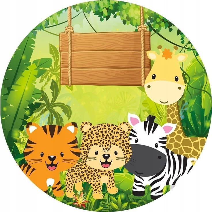 Opłatek na Tort SAFARI Dekoracja do Tortu Wydruk waflowy Okrągły 20cm